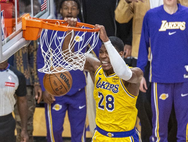 艾頓現在的狀態是越來越好了,不僅中距離穩,籃下的護框也漸漸展現了侵略性。當他找到狀態之後,對於湖人內線就是巨大的保障,最終砍下21分15籃板2助攻1搶斷1蓋帽的完美數據。外加八村壘砍下18分3籃板2助攻2搶斷。特別是他在進攻端的得分能力,這對於他就是基本盤了,連續兩場比賽保持輸出,湖人就很開心了。
